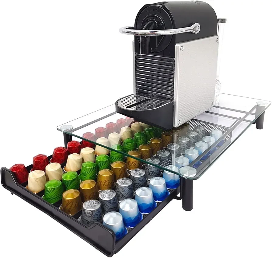 Tired of messy countertops and digging through boxes? Meet the ultimate 60-Pod Coffee Drawer from Sheenno – where style meets organization.